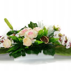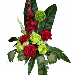 Kompozycja nagrobna w kontrastowym połączeniu czerwieni i jasnej zieleni to nowoczesna i...